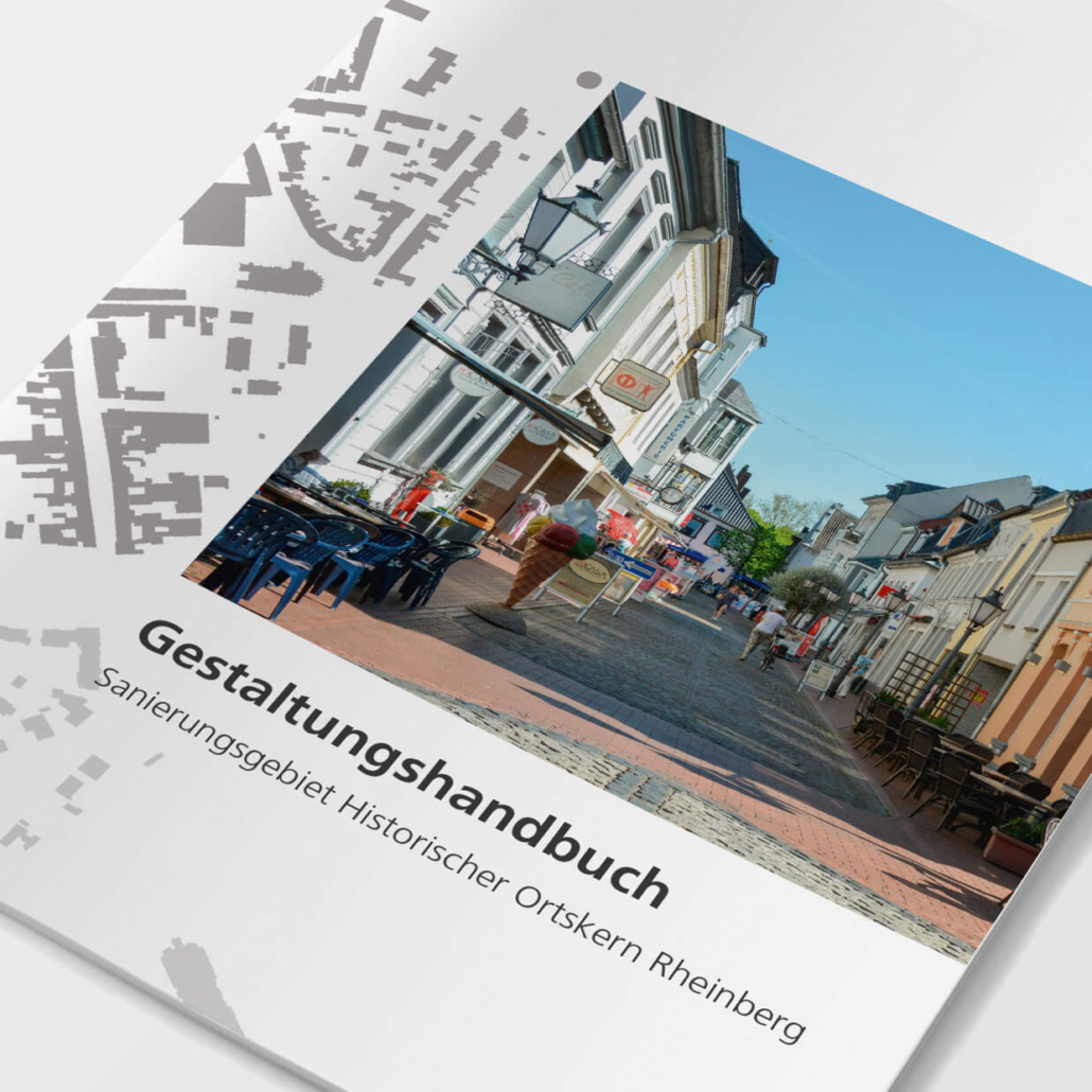 Der historische Ortskern von Rheinberg besticht durch seinen kompakten mittelalterlichen Stadtgrundriss und zahlreiche Baudenkmäler. Aber auch hier führt der Strukturwandel zu Leerstand und Modernisierungsstau. Das Integrierte Handlungskonzept Historischer Ortskern Rheinberg aus dem Jahr 2015 bündelt eine Reihe städtebaulicher Instrumente, die den Ortskern wieder stärker beleben und baulich aufwerten sollen. Das Gestaltungshandbuch ist eine von mehreren flankierenden Maßnahmen, die den Revitalisierungsprozess, insbesondere das private Engagement, bis heute unterstützen.